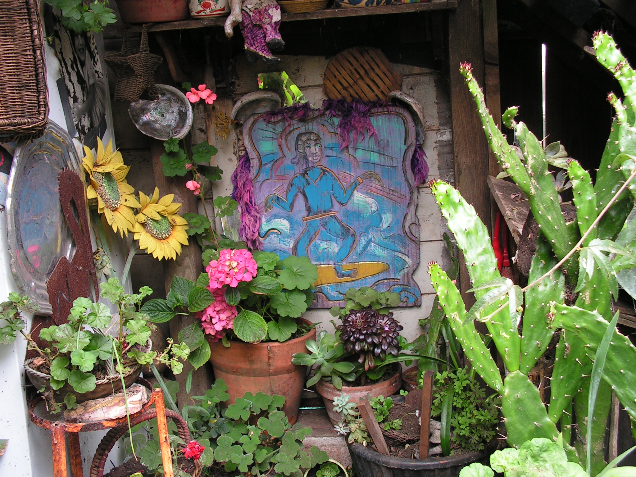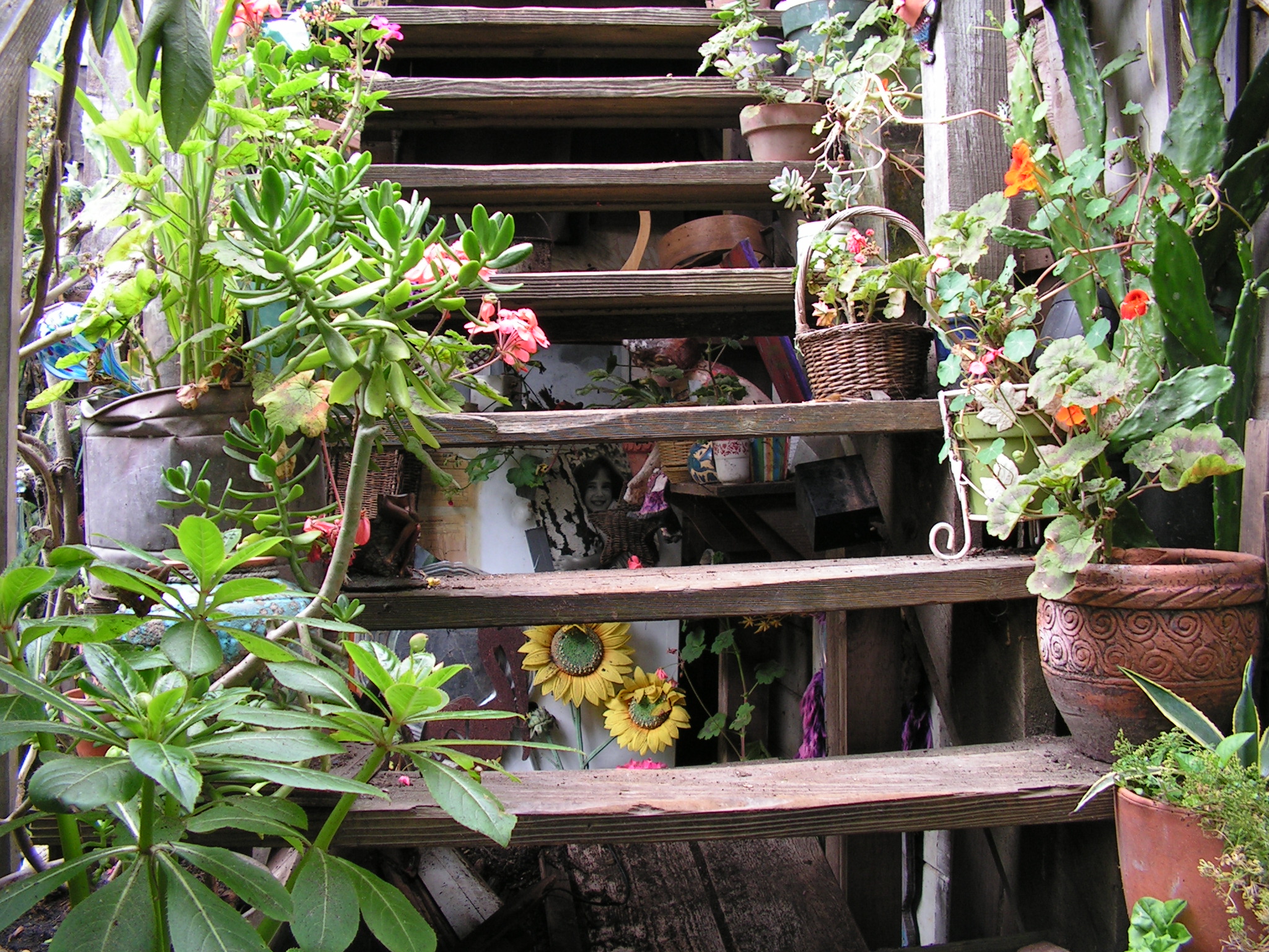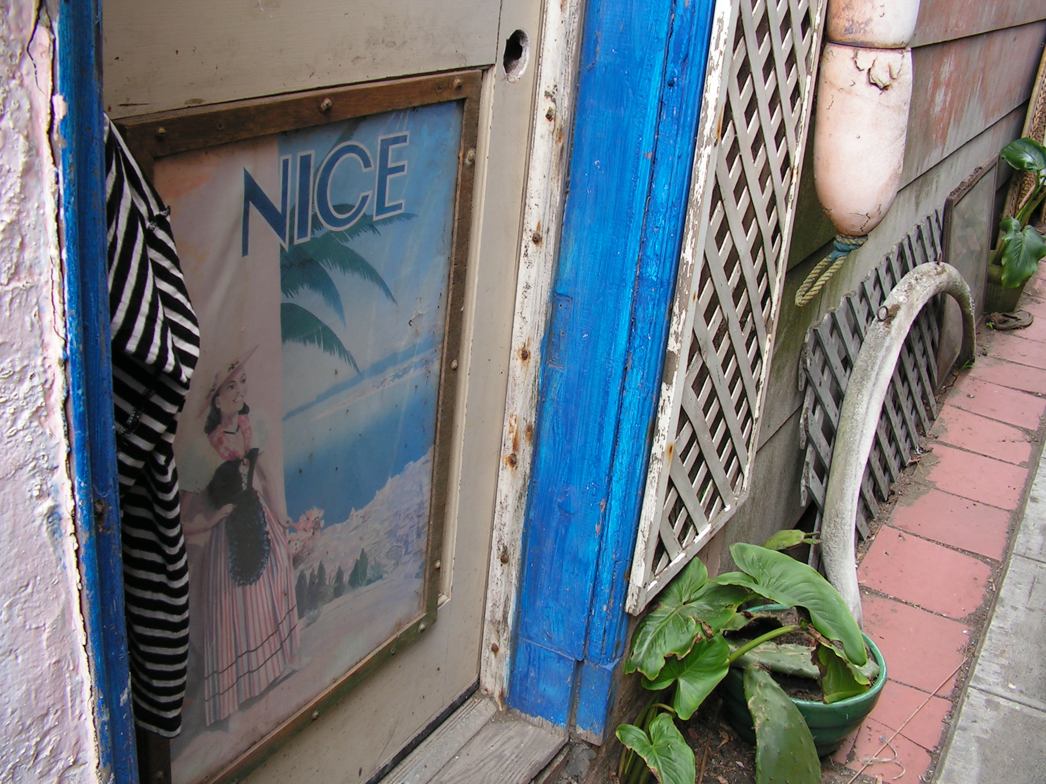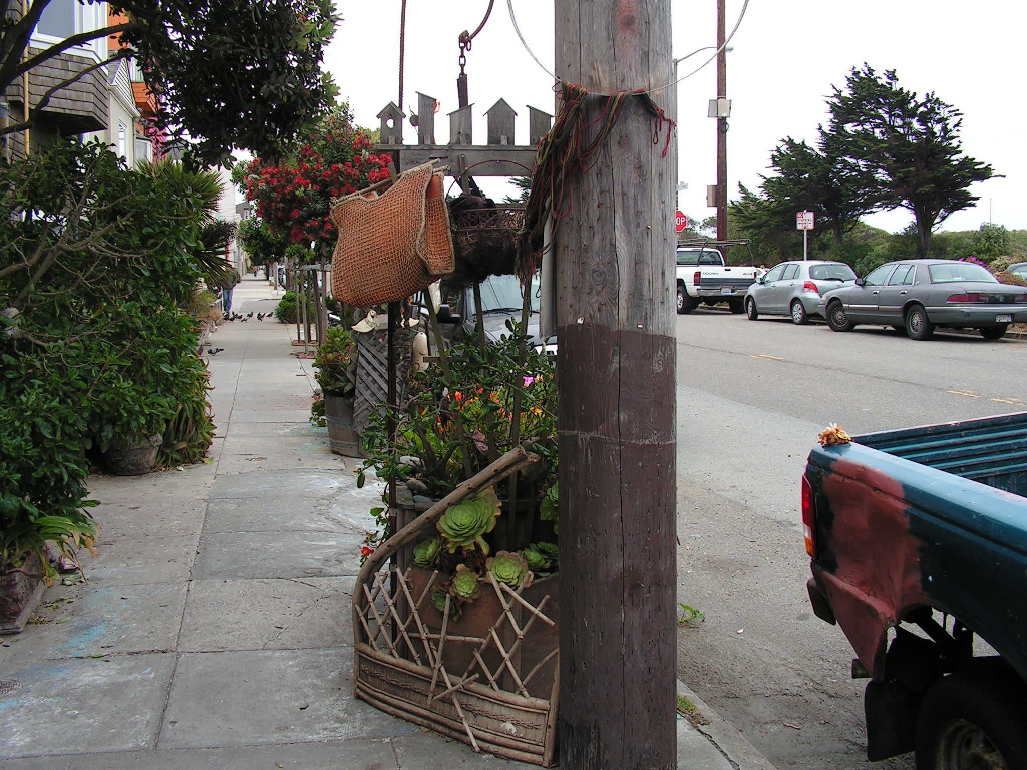 Eureka! I found a ladder on this side of the gate, and was able to climb up to unlatch my way to freedom. Something fell to the ground as I climbed over...perhaps a wooden duck. My apologies for the disturbance. I hope these photos and videos do your extraordinary residence the honor it deserves. Your splendid abode is a bright candle amid the gloomy ocean fog and drab houses that seem to go on forever, row after asphalt row. 1482 La Playa is truly a beacon of joy and kindness on the edge of a continent. I simply can't imagine what this house looks like inside! (Hydroponic pot farm? Heh.)